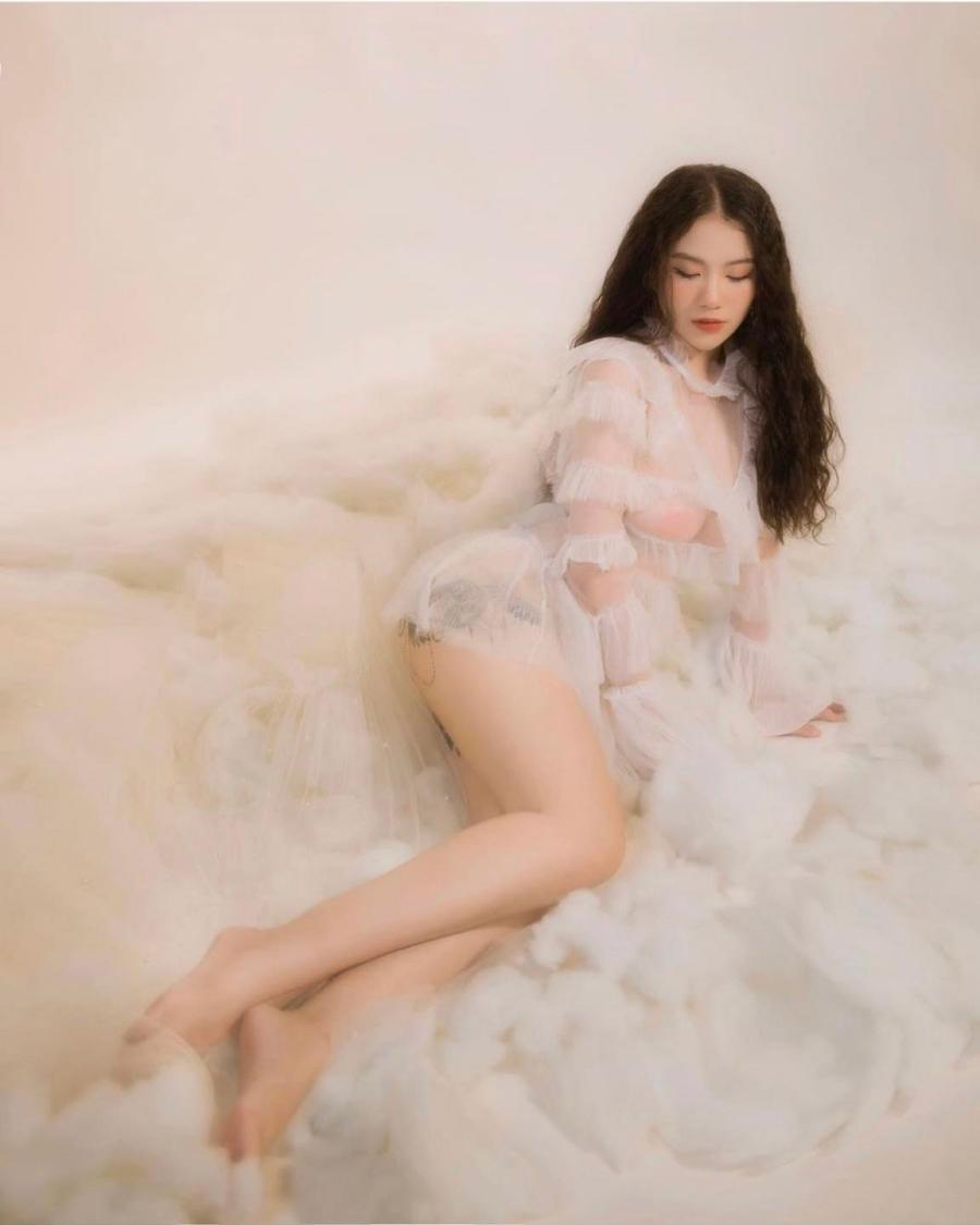 Dù không phải là người mẫu chuyên nghiệp nhưng Linh Miu vẫn ghi điểm vì cách tạo dáng thu hút.