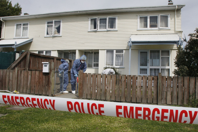 Cảnh sát khám xét ngôi nhà ở số 312 đường Wainoni - hiện trường của hai vụ án mạng. Ảnh: NZ Herald