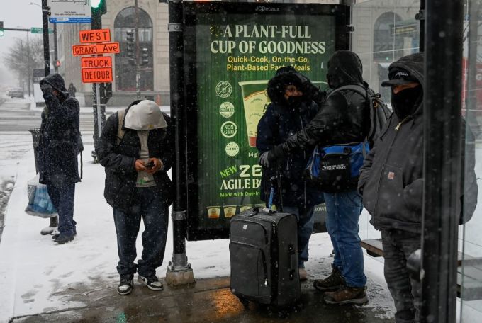 Người đứng chờ xe buýt dưới trời tuyết tại thành phố Chicago, bang Illinois, ngày 22/12. Ảnh: Reuters.
