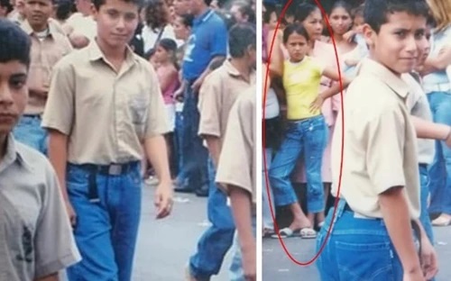 Trong hình, Ailiz 11 tuổi, đang đứng trên phố nhìn chằm chằm vào một chàng trai. Có lẽ trong giây phút đó, cô cũng không thể nào tưởng tượng nổi người mình nhìn lại là chồng tương lai - Pedro Pablo Pico Moreira (hiện 29 tuổi).