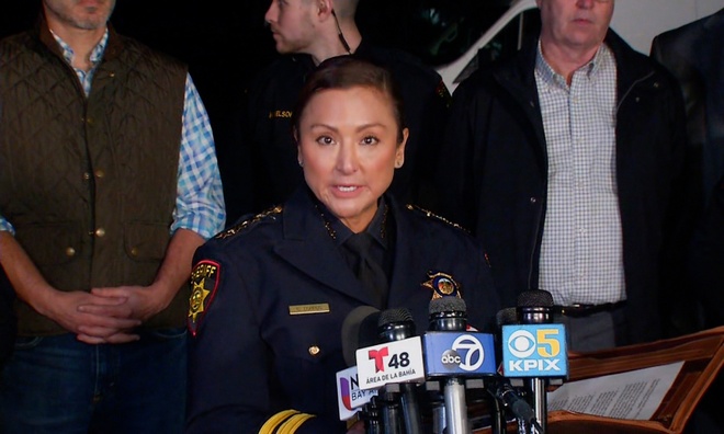 Cảnh sát trưởng hạt San Mateo Christina Corpus cho biết các vụ xả súng vào hôm 24/1 tại thành phố Half Moon Bay nhiều khả năng là một vụ bạo lực nơi làm việc. Ảnh: CNN.