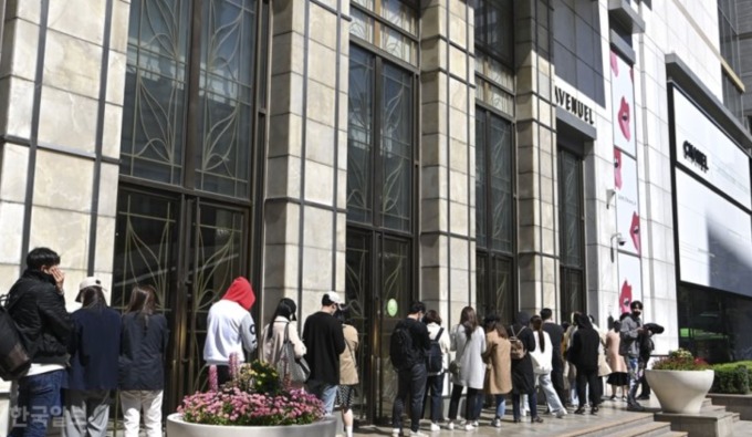 Nhiều người trẻ ở Hàn Quốc xếp hàng đợi mua trước một thương hiệu nổi tiếng năm 2020. Ảnh: Koreatimes