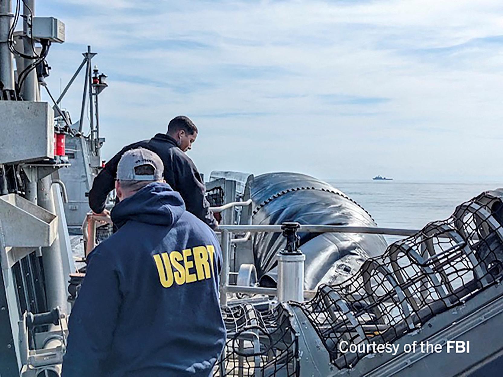 Hải quân Mỹ đă dành 1 tuần để trục vớt những thiết bị đi kèm khinh khí cầu của Trung Quốc, như pin mặt trời, antenna và thiết bị điện tử.