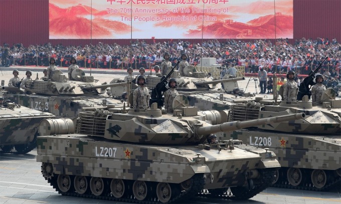 Xe tăng hạng nhẹ Type-15 của Trung Quốc trong lễ duyệt binh ở Bắc Kinh tháng 10/2019. Ảnh: Xinhua.
