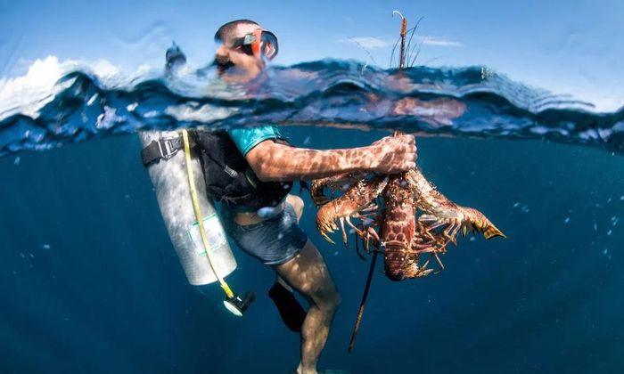 Thợ lặn bắt tôm hùm ở Honduras. Ảnh: Alamy.