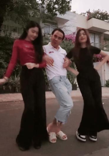Theo đó, MC Quyền Linh cùng với 2 con gái quay clip nhảy theo trend khá vui vẻ. Trong clip này, nam nghệ sĩ mặc quần jeans rách, đi dép tổ ong giản dị còn 2 con gái Lọ Lem - Hạt Dẻ ăn mặc trau chuốt hơn. Như mọi khi, Lọ Lem và Hạt Dẻ nhận được nhiều ý kiến khen xinh và ngưỡng mộ vóc dáng cân đối mà không nhắc nhiều đến MC Quyền Linh.