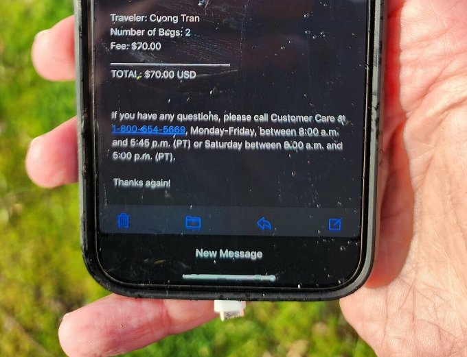 Ngoài ra, khi mở máy, iPhone vẫn đang hiển thị một email xác minh hành lý cho chuyến bay ASA1282 của Alaska Airlines. Đây là dấu hiệu để Bates nhận ra có thể chiếc iPhone bị rơi từ Boeing 737-9 MAX gặp sự cố hôm 5/1.