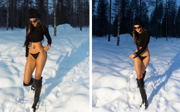 Trên trang cá nhân của mình. Hoa Hậu H'Hen Niê đã chia sẻ bức ảnh cô đang tạo dáng với bộ bikini màu đen dây xích vàng, phối cùng áo crop top dài tay, boots da cổ cao, mũ beanie và kính râm giữa trời tuyết rét buốt. Vẻ đẹp hình thể săn chắc, làn da nâu bóng khoẻ mạnh và thần thái tự tin của cô đã gây ấn tượng mạnh mẽ.