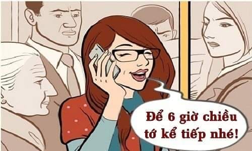 - Bạn ơi, bây giờ tớ phải xuống xe rồi. Có gì sáu giờ chiều nay, đi làm về rồi tớ sẽ gọi điện kể tiếp cho cậu sau nhé!