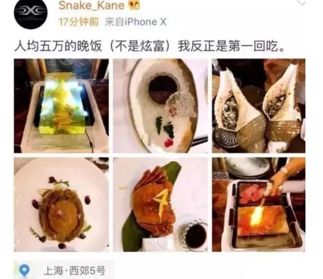 Bữa ăn trị giá 50.000 NDT/người (khoảng 175 triệu đồng) mà thiếu gia Jiang Xin chia sẻ trên MXH.
