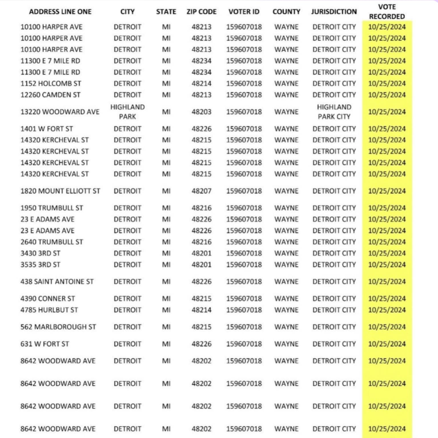 Old  Default SỐC VỀ VIỆC BẦU CỬ SỚM CỦA DETROIT, MICHIGAN ,một VoterID# có thể bỏ phiếu 29 lần từ nhiều địa chỉ?