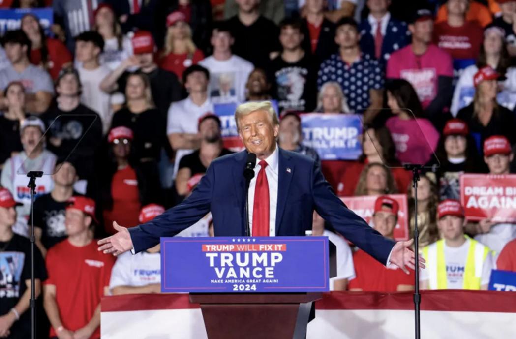 Ông Donald Trump trong sự kiện bế mạc chiến dịch tranh cử tại Van Andel Arena ở Grand Rapids, Michigan, Mỹ, ngày 5/11/2024. Ảnh: Getty