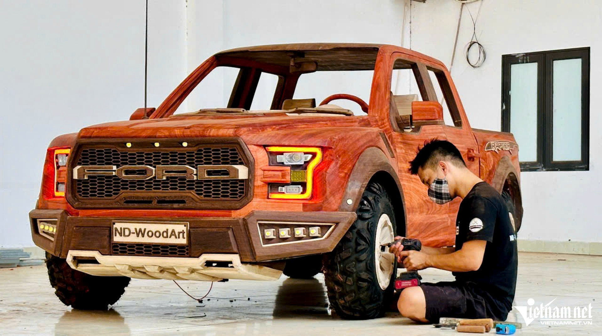 Chia sẻ với PV VietNamNet, anh Đạo cho biết mình từng mở xưởng gỗ. Cuối năm 2019, anh đưa con trai ra công viên chơi, thấy con rất thích xe mô hình nên anh nảy ra ý tưởng làm “siêu xe” bằng gỗ.