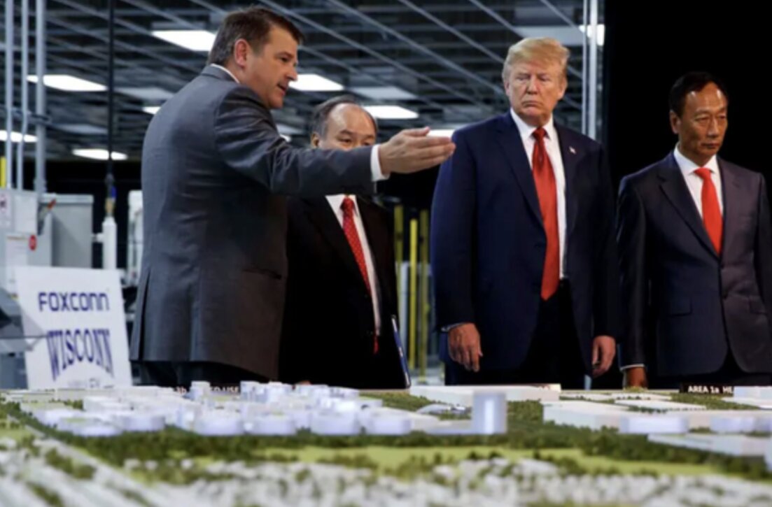 Năm 2017, Foxconn cho biết sẽ chi 10 tỷ USD xây dựng một nhà máy sản xuất khổng lồ tại Wisconsin — nhưng chỉ chi một phần nhỏ trong số đó. Vào thời điểm đó, ông Donald Trump ca ngợi dự án như một thành tựu lớn cho chương trình nghị sự kinh tế của mình mà không biết rằng sau này, các quan chức nhà nước liên tục đổ lỗi cho nhau còn công ty đành ‘bấm bụng’ thu hẹp kế hoạch.
