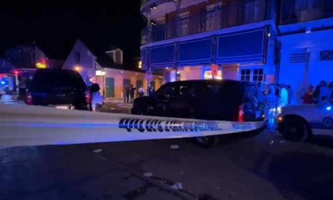 Một tài xế lao xe với tốc độ cao vào đám đông đang tụ tập sau khi đón giao thừa trên đường Bourbon, thành phố New Orleans, Louisiana, sau đó nhảy ra ngoài và nổ súng, buộc cảnh sát có mặt ở hiện trường phải bắn trả.