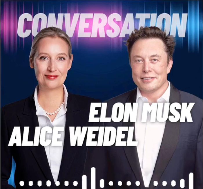 Tỷ phú công nghệ Mỹ Elon Musk đã phát trực tiếp một cuộc trò chuyện với Alice Weidel, đồng lãnh đạo Đảng Cực hữu Sự lựa chọn vì nước Đức (AfD) trên nền tảng mạng xã hội X vào thứ Năm.