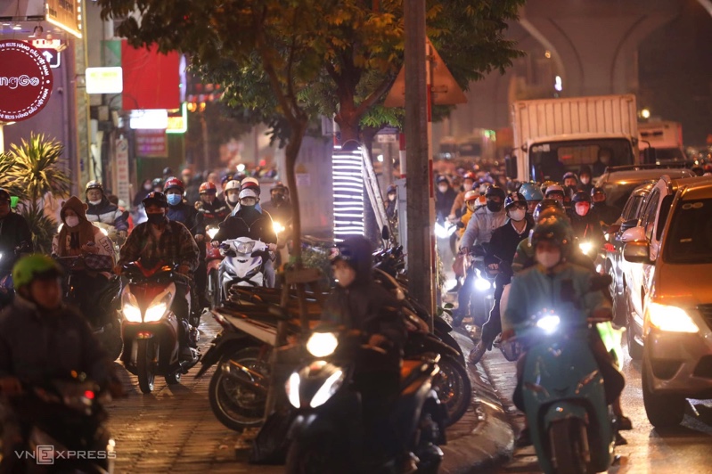(Ảnh trên báo điện tử Vnexpress: Khoảng 18h30 ngày 13/1/2025 đoàn xe nhích từng chút trên đường Trường Chinh, đoạn gần với Bảo tàng Phòng không - Không quân)