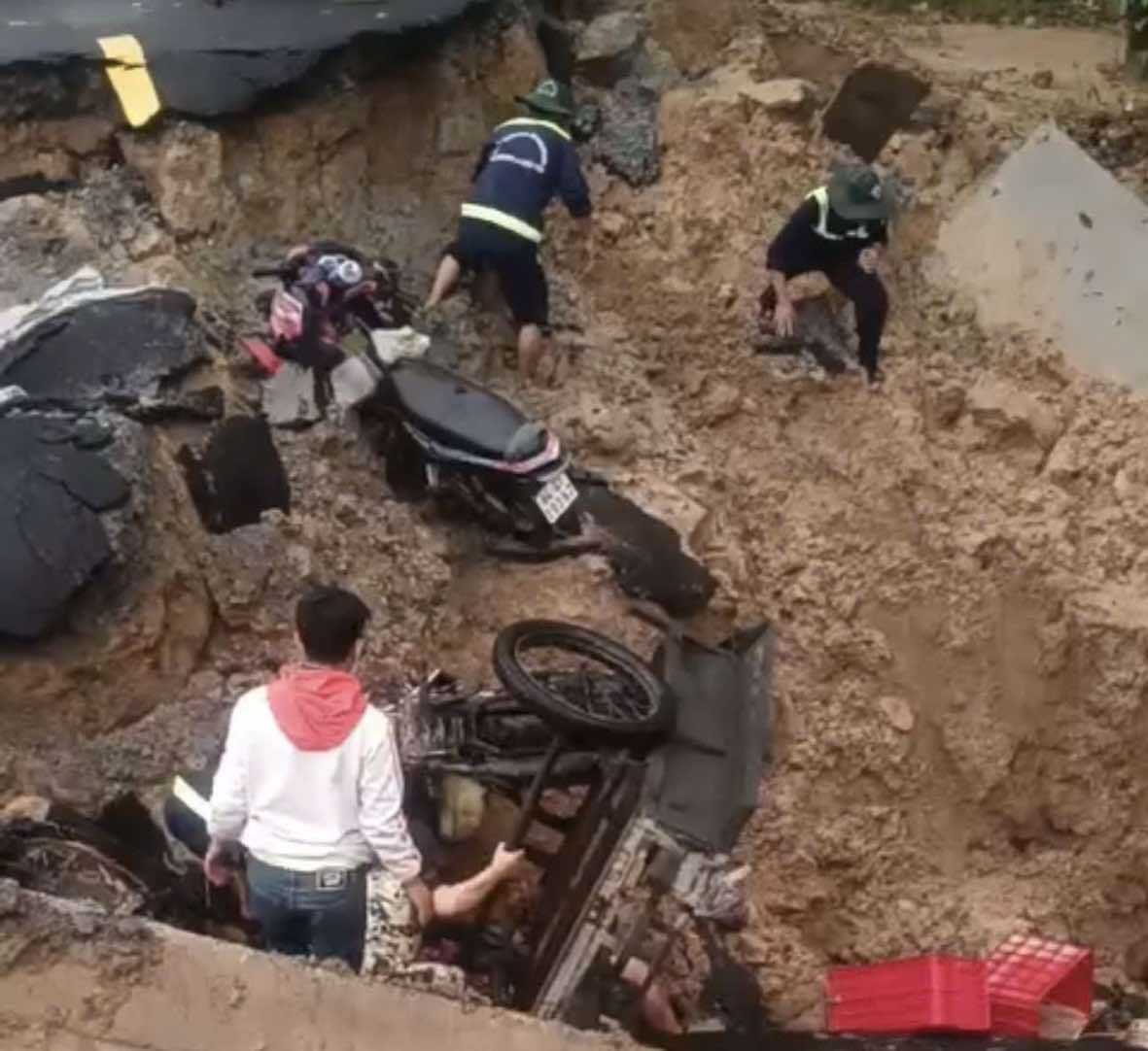 Chỉ trong ít phút, khu vực này tiếp tục bị sụt lún tạo thành hố sâu khoảng 5 mét, chiều rộng khoảng 10 mét.