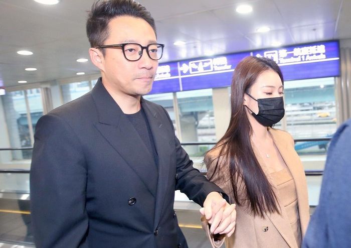 Uông Tiểu Phi và Mandy trở về Đài Loan hôm 20/2. Ảnh: 163.