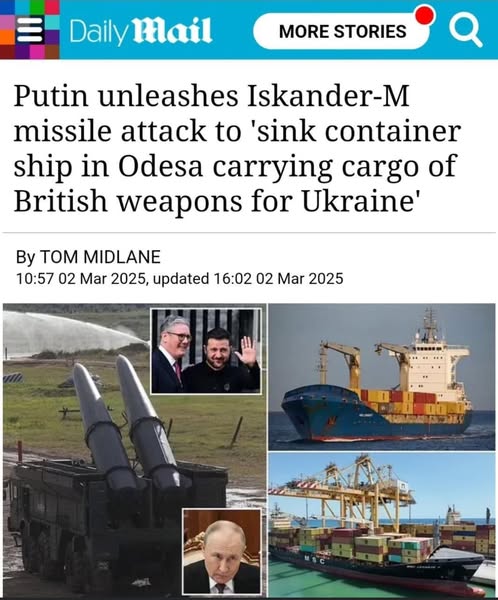 Hôm 1/3/25, lúc Anh đang tổ chức hội nghi thượng đỉnh tại London để bàn về việc hỗ trợ Ukraine và định đưa quân hỗn hợp giữ ǵn ḥa b́nh vào Ukriane để trấn giữ. Và cũng buổi sáng này, hai tàu ​​container Super Sarkas và MSC " Levante " của Thụy Sỹ cũng vừa cập cảng Odesa, một cảng nước sâu lớn nhất của Ukraine.