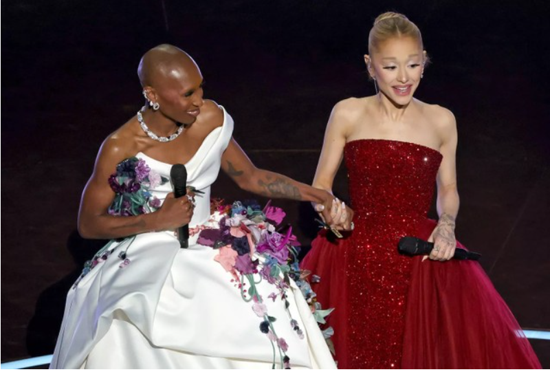 Ariana Grande và Cynthia Erivo "bay cao" với nhạc phim Wicked. Ảnh: Getty.