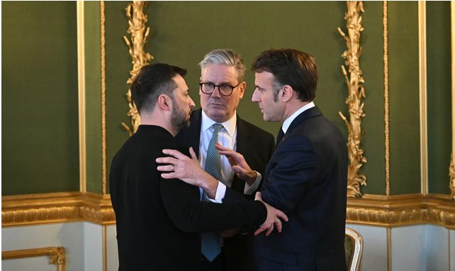 Các ông Volodymyr Zelenskyy, Keir Starmer và Emmanuel Macron trong cuộc gặp tại London hôm 2-3. Ảnh: WPA