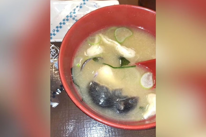 Hình ảnh con vật thuộc loài gặm nhắm, nghi là chuột, trong bát súp miso. Ảnh: Masaki03_10/TikTok.