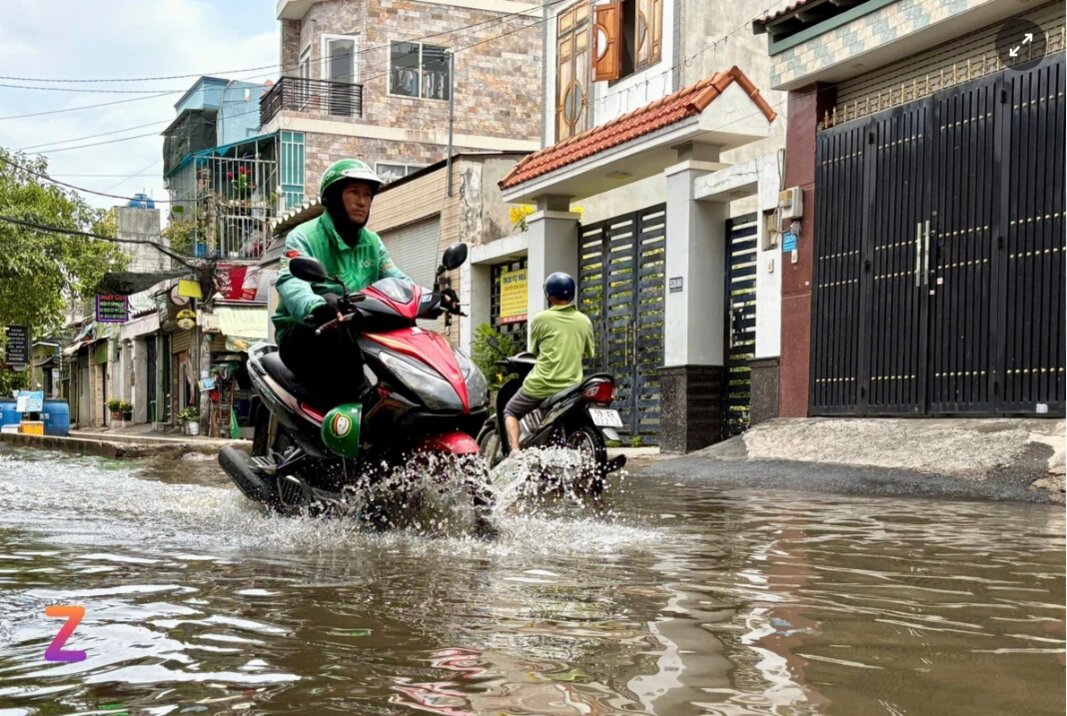 Sáng 4/4, khi dắt xe máy ra đi làm, chị Nguyễn Thùy (ở quốc lộ 13, TP Thủ Đức) vẫn thấy con hẻm trước nhà hoàn toàn khô ráo. Tuy nhiên, đến trưa, lúc chị vòng về nhà lấy đồ, gần 1/3 con hẻm đã ngập nước.