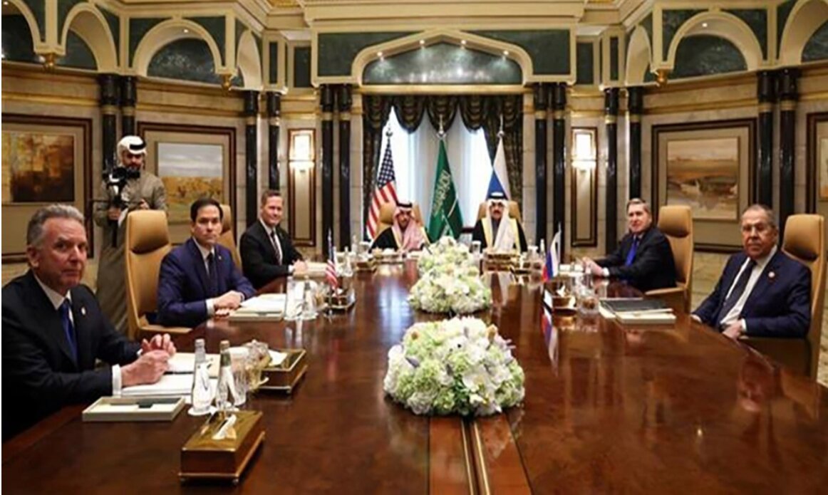 Ngoại trưởng Nga Sergey Lavrov (phải) và Ngoại trưởng Mỹ Marco Rubio (thứ 2, trái) tại cuộc đàm phán ở Saudi Arabia, ngày 18/2/2025. Ảnh: Reuters