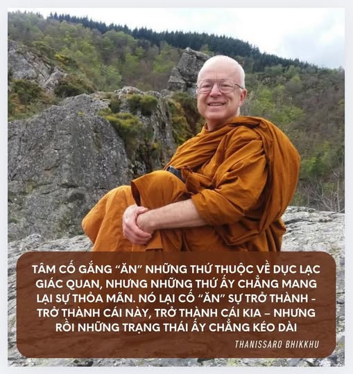Nhưng việc “ăn uống” của tâm thì phức tạp hơn cơ thể rất nhiều. Tâm cố gắng “ăn” những thứ thuộc về dục lạc giác quan, nhưng những thứ ấy chẳng mang lại sự thỏa mãn. Nó lại cố “ăn” sự trở thành - trở thành cái này, trở thành cái kia – nhưng rồi những trạng thái ấy chẳng kéo dài. Tâm chán ghét tất cả, rồi chuyển sang “ăn” ý tưởng về sự hủy diệt, muốn đập bỏ, tiêu tan mọi thứ.