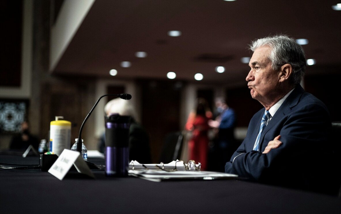 Chủ tịch Cục Dự trữ Liên bang Mỹ (FED) Jerome Powell tại phiên điều trần của Ủy ban Ngân hàng Thượng viện vào tháng 11-2021. Ảnh: Washington Post.