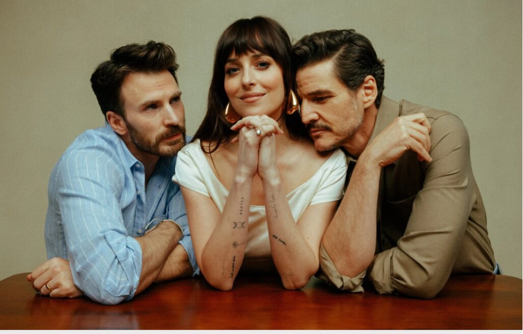 Dakota Johnson, Pedro Pascal và Chris Evans cùng tham gia quảng bá cho bộ phim mới mang tên “Materialists". IG.