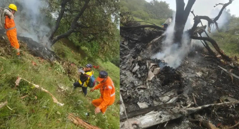 Hiện trường vụ rơi máy bay trực thăng tại Kedarnath, bang Uttarakhand, miền Bắc Ấn Độ sáng 15/6 (Ảnh: Times of India).