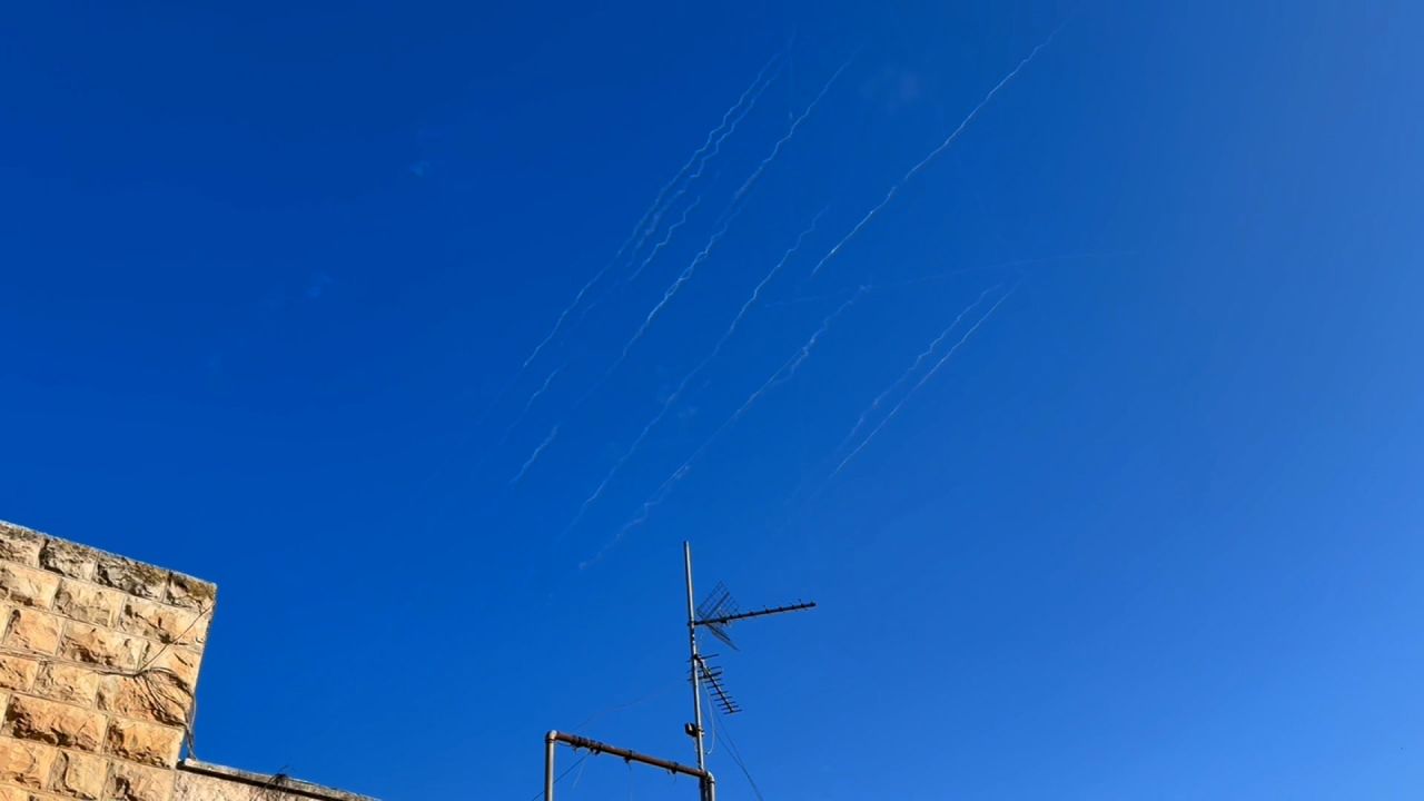Những vệt tên lửa được nhìn thấy trên bầu trời Jerusalem vào ngày 22-6, khi Iran lần đầu tiên khai hỏa về phía Israel kể từ khi Mỹ tấn công cơ sở hạt nhân Iran. Ảnh: CNN