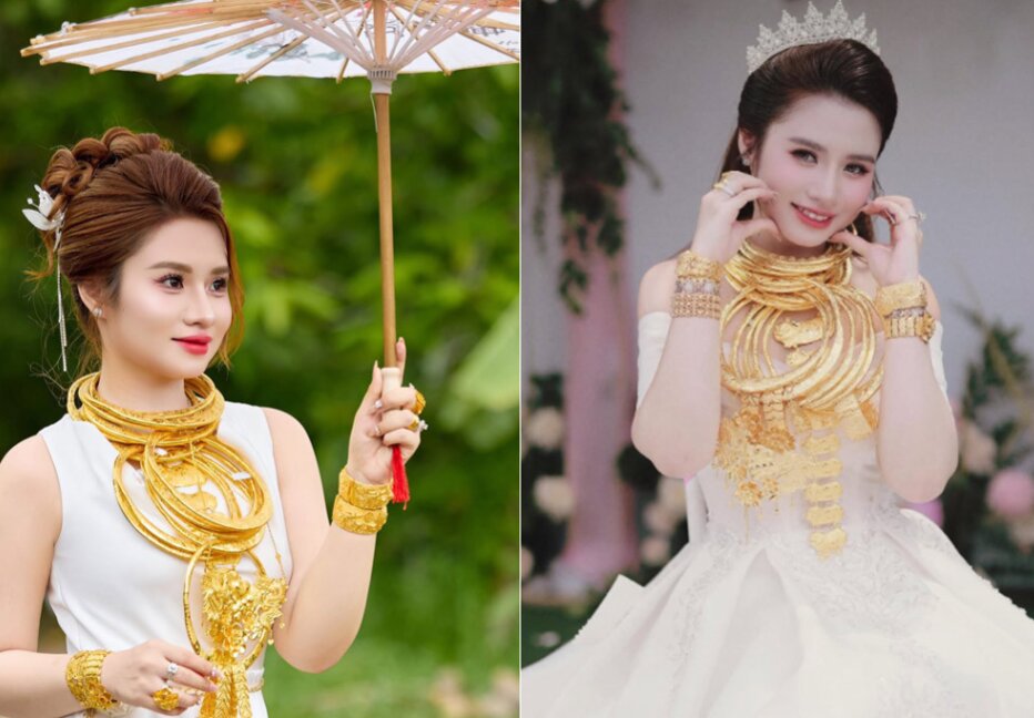 Cô dâu xinh đẹp đeo vàng đầy cổ