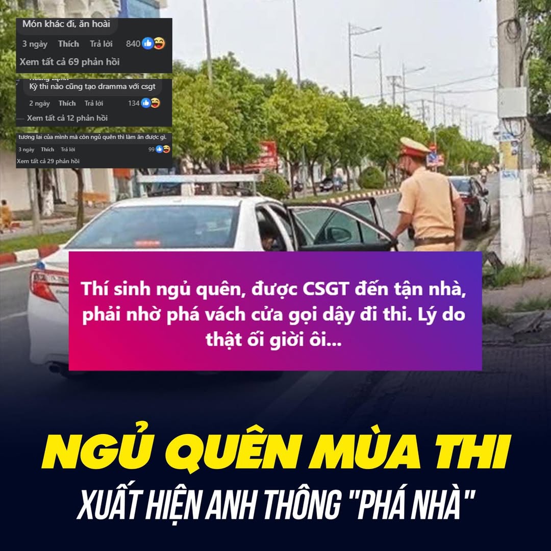 Người dân đă quá quen thuộc với cảnh ŕnh rập bắt phạt xe, dựng barie chặn đường, chứ nào mấy khi thấy được h́nh ảnh CSGT biết giúp đỡ dân. Nhưng "đến hẹn lại lên", cứ tới mùa thi lại diễn đi diễn lại một vở: thí sinh ngủ quên, công an xuất hiện, cảm xúc dâng trào, like share khắp nơi...