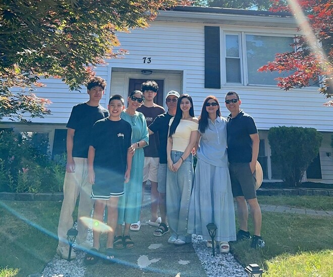 Trương Quỳnh Anh chia sẻ thông qua dòng trạng thái: “Vào 1 ngày nắng đẹp trời trong, gia đình chúng ta gặp nhau ở Boston. 13 năm mới có dịp đưa Shi qua đây thăm bé Ba bé Mẹ”
