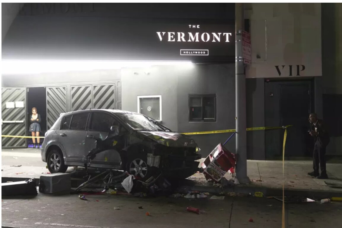 Hiện trường vụ lao xe vào đám đông bên ngoài một hộp đêm tại thành phố Los Angeles (Mỹ), ngày 19/7/2025. Ảnh: AP