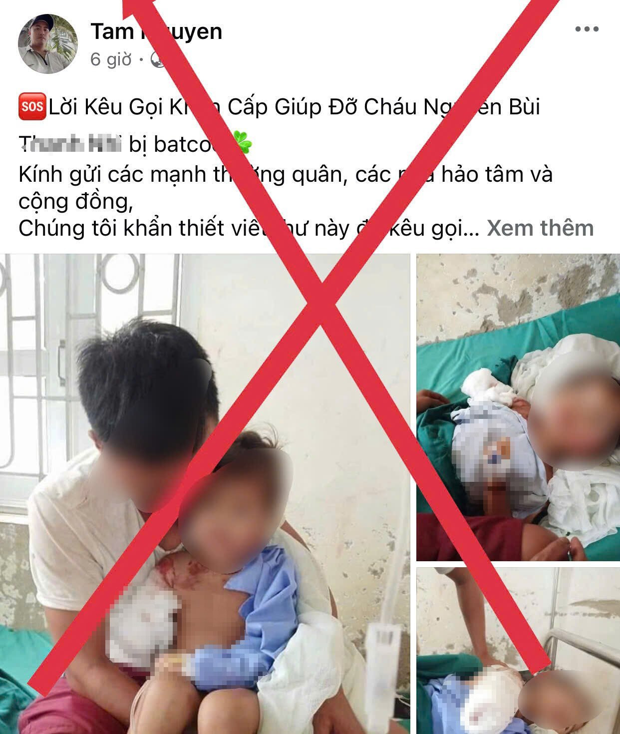 Bài viết trên nhanh chóng được các hội nhóm, trang cá nhân chia sẻ. Sau khi đạt lượng tương tác cao, nội dung bài viết trên tài khoản “Tam Nguyen” được chỉnh sửa thành lời kêu gọi quyên góp, ủng hộ cho trường hợp cháu N.B.T.N. Theo đó, cháu N. sống tại xã Kỳ Thượng, huyện Kỳ Anh, tỉnh Hà Tĩnh bị các đối tượng bắt cóc đẩy ngã xuống đường và vô tình bị xe máy cán qua làm mất một cánh tay.