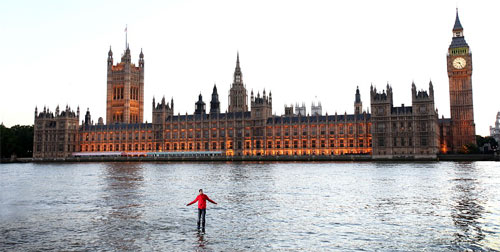 Ảo thuật gia trình diễn đi bộ trên sông Thames