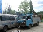 Húc đuôi xe kiểm lâm, xe lâm tặc lún đầu