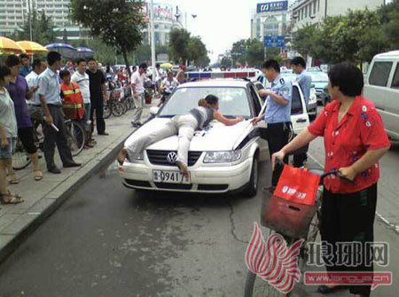 Khóc lóc, nằm lên nóc capo xe cảnh sát ăn vạ