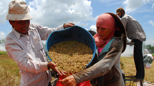 | Nông dân Đồng Tháp Mười thu hoạch lúa hè thu 2011- Ảnh: HOÀNG THẠCH VÂN |