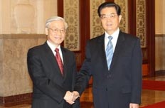 Tổng Bí thư Nguyễn Phú Trọng trân trọng mời Tổng Bí thư, Chủ tịch nước Hồ Cẩm Đào sớm sang thăm lại Việt Nam. Tổng Bí thư, Chủ tịch nước Hồ Cẩm Đào bày tỏ cảm ơn về lời mời.