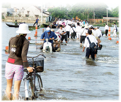 Mưa lớn ròng rã suốt 2 ngày đêm đã khiến mực nước sông Trường (Quảng Nam) dâng cao. Tại cầu ngầm sông Trường, tỉnh lộ ĐT 616 từ sáng sớm qua (7.11), nước lũ dâng cao 5m, khiến giao thông tê liệt hoàn toàn. Mưa lớn đã làm tê liệt toàn bộ các tuyến giao thông liên huyện, liên xã ở hai huyện Nam Trà My và Bắc Trà My do ngập lụt cục bộ và sạt lở đất.