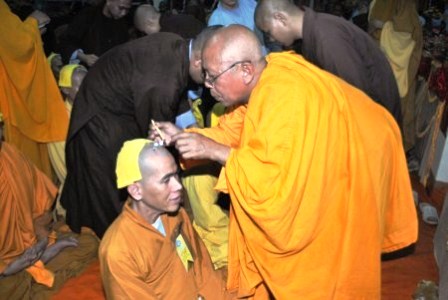 - Trên đầu của những người xuất gia theo đạo Phật thường có những vết sẹo tṛn, đây là vết tích của việc đốt hương cúng dường chư Phật. Trong Phật giáo lễ này c̣n được gọi là “Tấn hương” (đốt hương), “Nhiệt đảnh” (Đốt đầu) hay c̣n gọi là “Đốt Liều”.