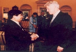 | Ông Nguyễn Đình Lương bắt tay Tổng thống Bill Clinton |