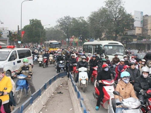 Hiệu quả của việc thay đổi giờ học để tránh ùn tắc giao thông đang dần có tín hiệu tích cực? (Ảnh chụp ngày 1/2/2012)
