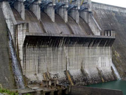Nước ṛ rỉ tại đập thủy điện Sông Tranh 2, Quảng Nam hôm 19-03-2012. Photo courtesy of vov.