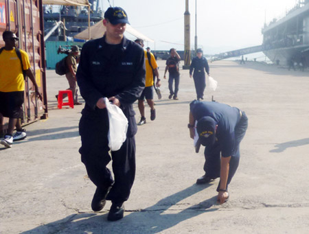 Lính thủy Mỹ dàn hàng... nhặt rác trên cảng Đà Nẵng